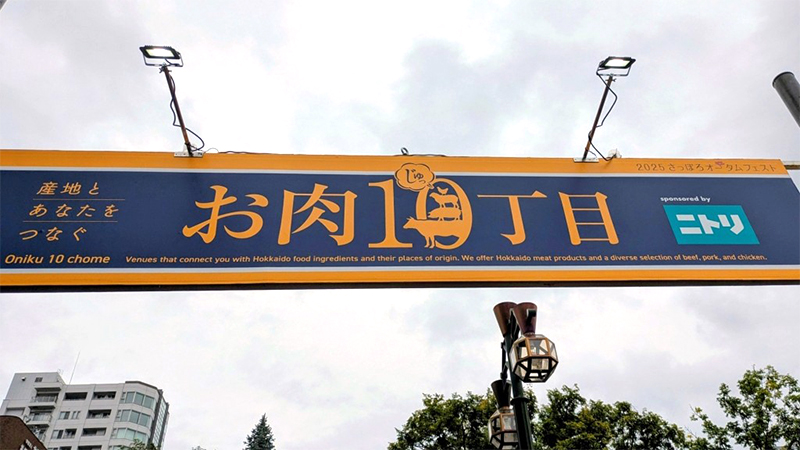 肉料理の有名店が集結する「産地とあなたをつなぐ お肉じゅっ丁目」では、北海道産を中心とした牛・豚・羊・鶏などのお肉がそろいます。入口からすでにお肉の焼けるいい香りが漂っていました。