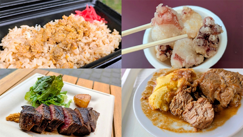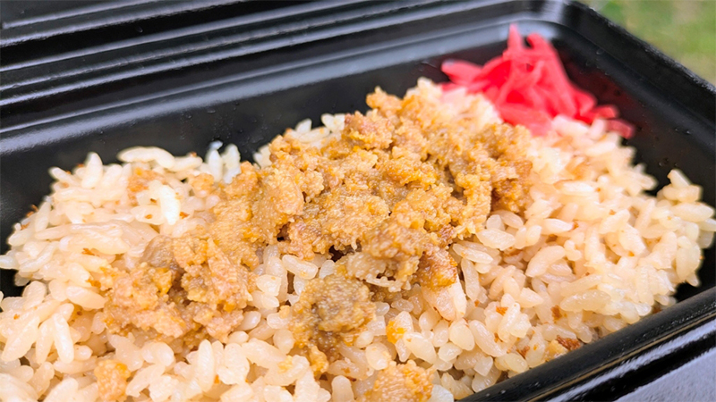 ふわふわのうにはほんのり甘く、香り豊か。旨みをしっかり吸ったごはんに、箸休めの紅生姜も効いています。8丁目会場は短期間だけ登場するものも多く、一期一会感の強い会場です。また、人気のメニューは夕方には売り切れてしまうことも。早めに行くのがおすすめです。