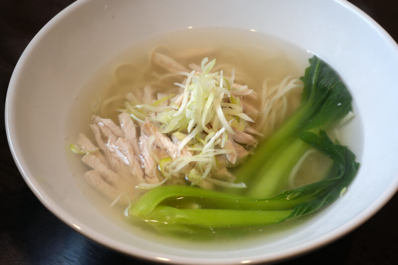 麺類では、「鶏塩そば」がおすすめの典江さん。自家製塩ダレを使っていてあっさりしていて子供から年配者まで朝からでも食べられる優しいけどしっかりと旨味のあるスープが自慢です、とのこと。