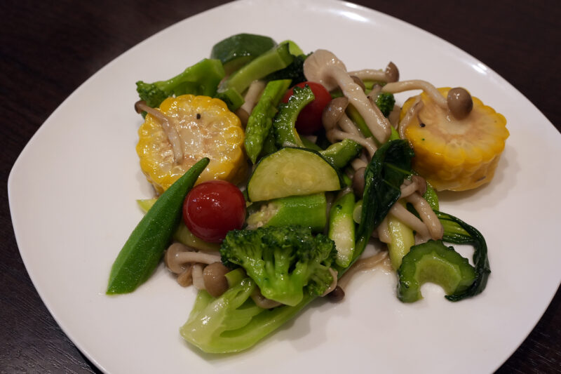 さらに「いろいろ野菜の塩炒め」も自信作とのこと。干し貝柱や干しエビなどを使った自家製塩ダレが味の決め手だということだ。円やかな塩味で野菜の美味しく仕上げるのは単純だからこそ味の違いが良く分かるらしい。