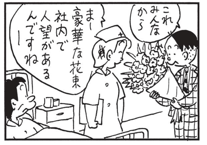 朝イチ更新!4コマ漫画『かりあげクン』豪華な花束の理由は?