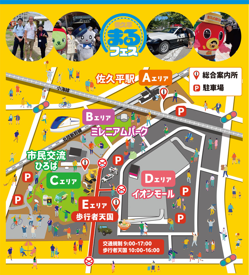 【Aエリア】佐久平駅構内、佐久平駅蓼科口駅前広場、プラザ佐久1F・2F、新幹線改札前自由通路