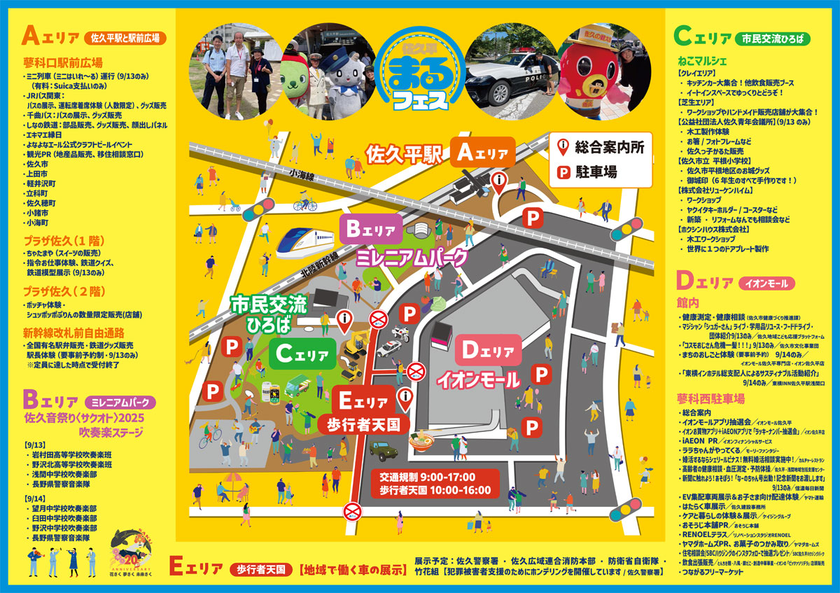 長野県佐久市で、佐久平駅、「イオンモール佐久平」「市民交流ひろば」「ミレニアムパーク」など5つエリアを会場に、大型イベント『第3回 まるごとつながるフェスタ佐久平(佐久平まるフェス)』が、2025年9月13日(土)・14日(日)に開催。