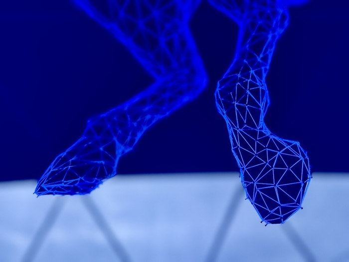 イヤホンからの「右だ」「左だ」という指示に従って街を進んでいく。すると行く先々で、登場人物である青い衣装の「猫」たちを発見。屋根の上、土管の側、開けた空間のど真ん中など、本当に猫がいそうな場所にいるのである。しなやかに身体を動かす俳優の姿は猫そのものだ。