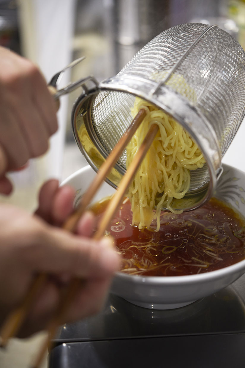 あっさりとした昔ながらの中華そば。スープはシンプルながら、鶏油の香りとコクが感じられ、まさに体に染み渡るような味わい。柔らかめの麺とよく絡み、「これこそ中華そば!」と頷けるような一杯です。自家製のチャーシューは肩ロースを使っており、肉感がしっかり感じられる食感。「一番のこだわりは、先代から受け継いだレシピを忠実に再現すること」と小林さん。