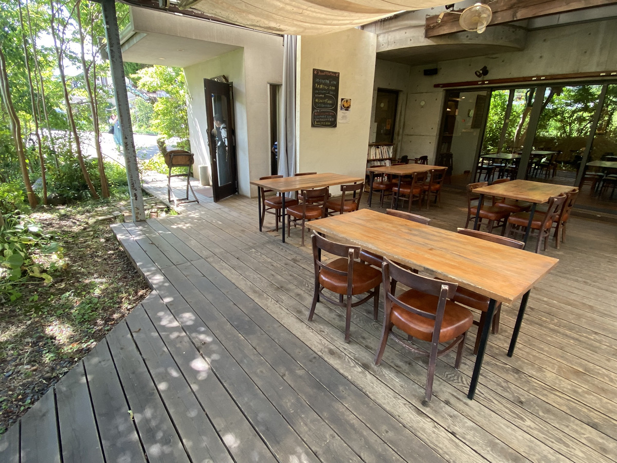 「鯖のスモーク定食」や「ベジタブルカレー」など、どれも彩り豊かで、お野菜の味が濃くて美味しい! ドリンクもコーヒー、紅茶、オレンジジュース、グレープジュースなど種類豊富。テラス席もあり、天気のいい日は外で食事やカフェタイムを楽しむのもいいですね。