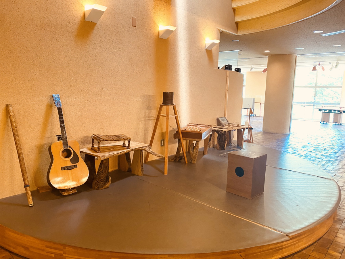 宿泊は洋室(4人部屋)と和室(4人・8人部屋)で、最大100名までOK。合唱団や吹奏楽部の合宿にも利用されていて、リハーサル風景に出会えることも。木琴やマリンバ、ボンゴ、ホラ貝など、珍しい楽器の貸し出しもあり、親子で音楽体験も楽しめます。