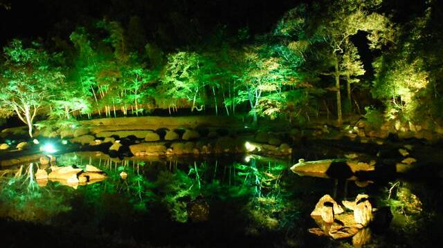 『しあわせの村』(神戸市北区)の日本庭園で11月14日、「紅葉のライトアップ」が始まります。11月24日まで。入場無料。