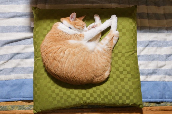 寝床やブランケットをブルーやグリーンにすると、猫がよく眠ってくれるという声も少なくありません。