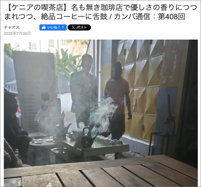 ・その18「【ケニアの喫茶店】名も無き珈琲店で優しさの香りにつつまれつつ、絶品コーヒーに舌鼓 / カンバ通信:第408回」