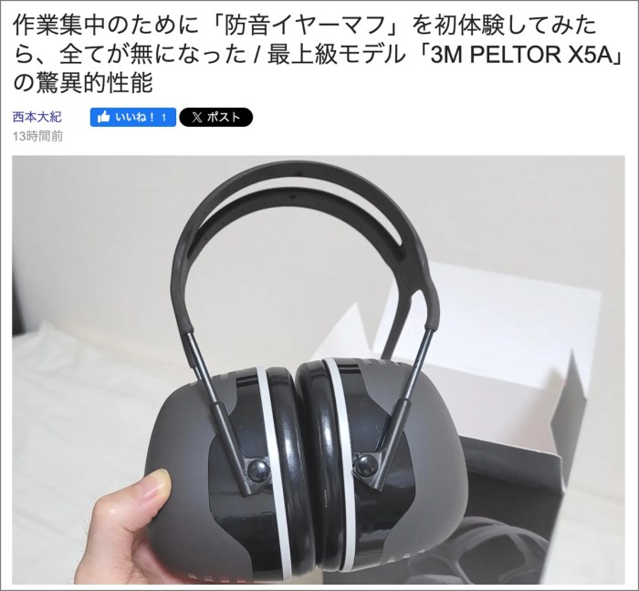 ・その16「作業集中のために「防音イヤーマフ」を初体験してみたら、全てが無になった / 最上級モデル「3M PELTOR X5A」の驚異的性能」