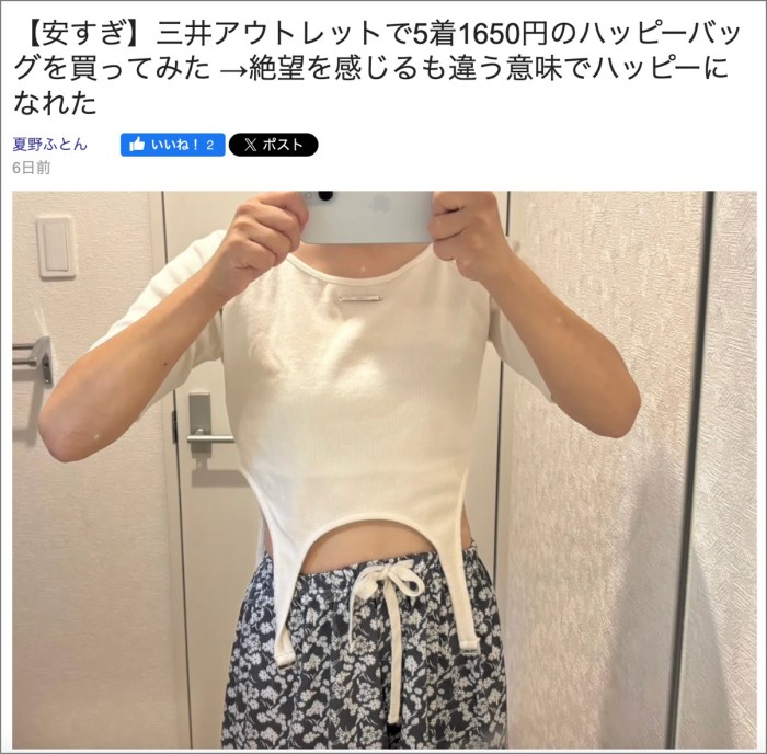 ・その24「【安すぎ】三井アウトレットで5着1650円のハッピーバッグを買ってみた →絶望を感じるも違う意味でハッピーになれた」