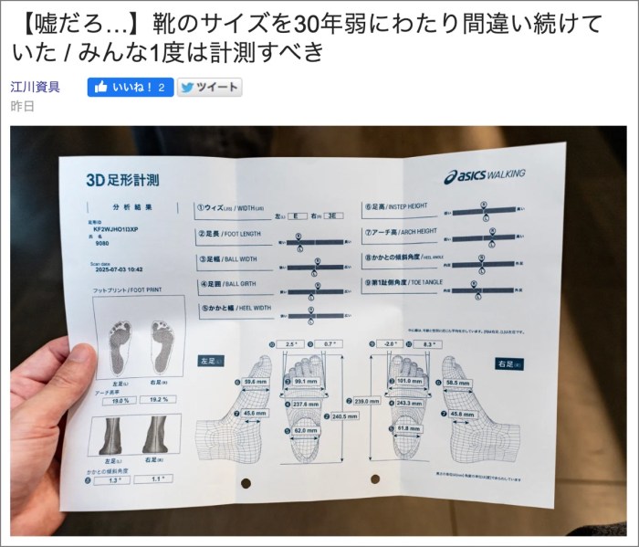 ・その14「【嘘だろ…】靴のサイズを30年弱にわたり間違い続けていた / みんな1度は計測すべき」