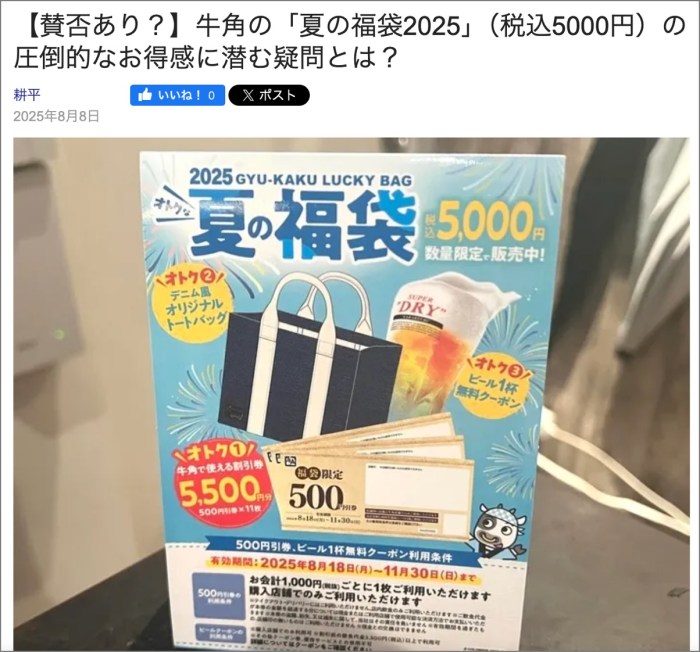 ・その17「【賛否あり?】牛角の「夏の福袋2025」(税込5000円)の圧倒的なお得感に潜む疑問とは?」