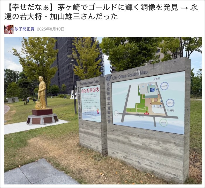 ・その8「【幸せだなぁ】茅ヶ崎でゴールドに輝く銅像を発見 → 永遠の若大将・加山雄三さんだった」