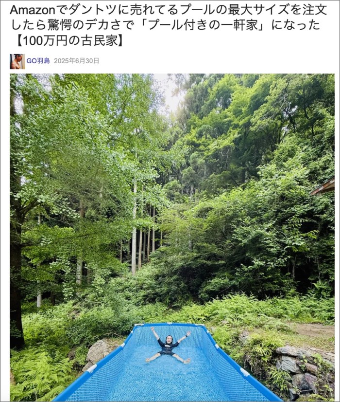 ・その1「Amazonでダントツに売れてるプールの最大サイズを注文したら驚愕のデカさで「プール付きの一軒家」になった【100万円の古民家】」