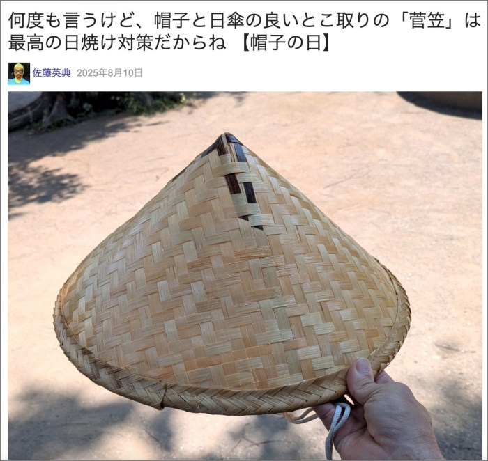 ・その4「何度も言うけど、帽子と日傘の良いとこ取りの「菅笠」は最高の日焼け対策だからね 【帽子の日】」