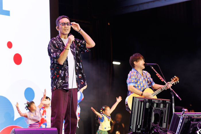 その後、コブクロはEXPOアリーナにてEXPO Thanks LIVEに出演。半年間、万博会場だけでなく、大阪・関西のいたるところで、そして全国で流れてきたオフィシャルテーマソング「この地球(ほし)の続きを」を熱唱。3年前に公開した「この地球(ほし)の続きを」のMUSIC VIDEOに出演し、イベントでも多数共演した、このほしキッズを含めた13名のキッズダンサーがパフォーマンスを華やかに彩った。振付師辻󠄀本知彦氏が監修し日本中に浸透した、このMUSIC VIDEOのダンス。今日も観客がこんにちはのフレーズに合わせて両手で大きな丸をつくる恒例のダンスで、ステージと一体となって楽しんでいた。最終日となる今日のステージでは、サビのこんにちはをありがとうに変えたスペシャルバージョンで、大阪・関西万博の関係者、来場者への感謝の想いを表現した。