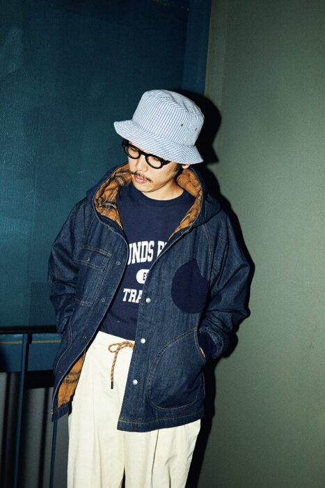 このデニムフードジャケットは、いわゆるハードなアメカジデニムとは一線を画す一着。ポケットの形状や配置に遊び心が効いたデザインが魅力だ。普段と違うスタイリングを楽しみたい人に最適で、価格も非常に良心的です。