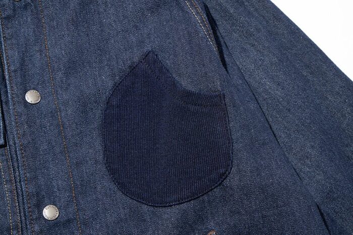 左胸に配したリブ素材のポケットやボクシンググローブ型のポケットがアクセントとして効く、遊び心に溢れた無二のデザイン。