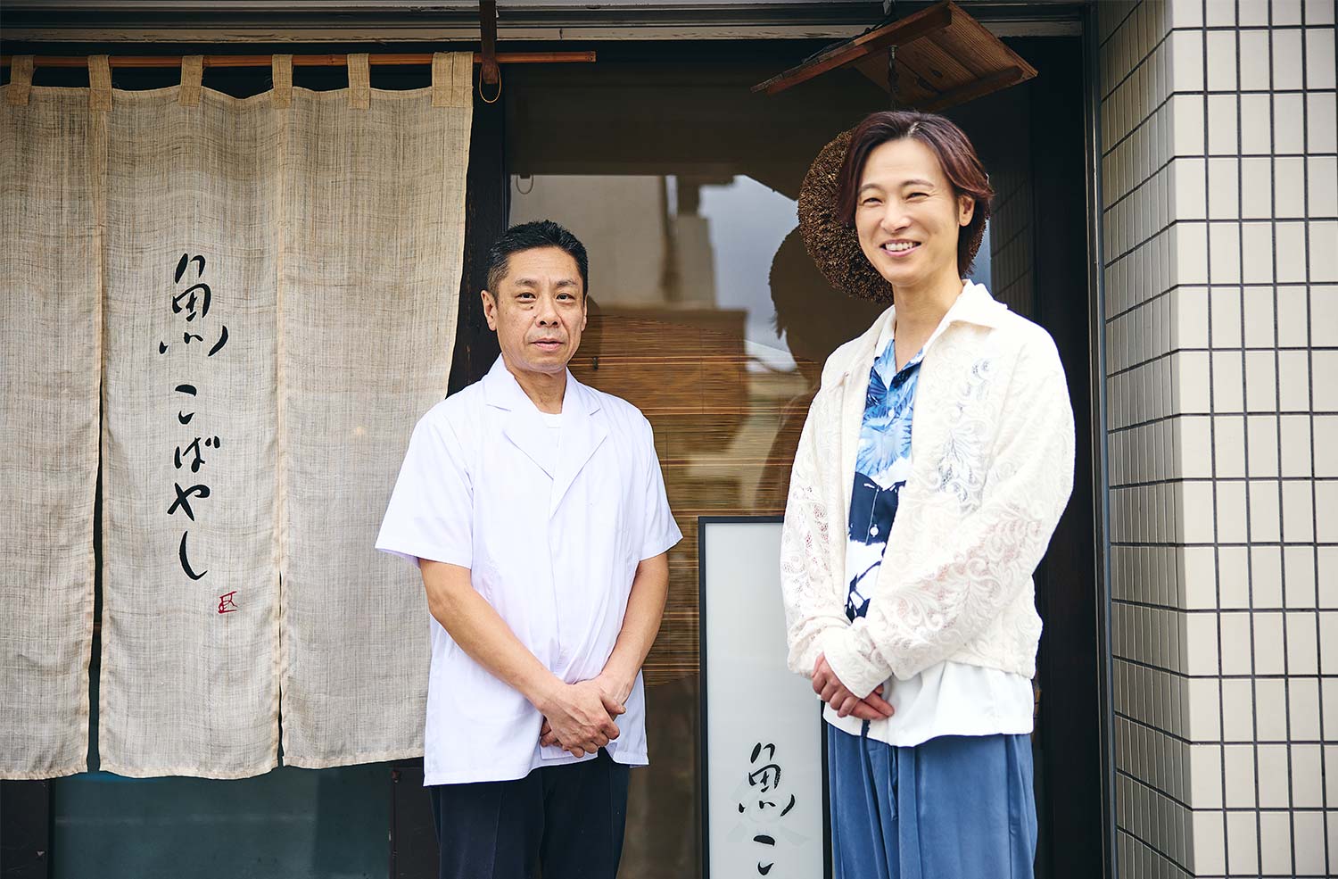 ここで取材終了の時間に。すると、なぜか一行を引率し歩き出す惠ちゃん。到着したのは、ほど近い料理店『魚こばやし』さん。どうやらトークを磨くお店のようで……?