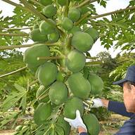 JA伊万里の浦本桂介さんによると、今まさに旬を迎えているのが「新高(にいたか)」という品種。サイズが大きく、果汁たっぷりで強い甘みが特長です。光センサーで一つひとつ糖度をチェックしているため、どの梨を選んでも間違いないおいしさを楽しめます。
