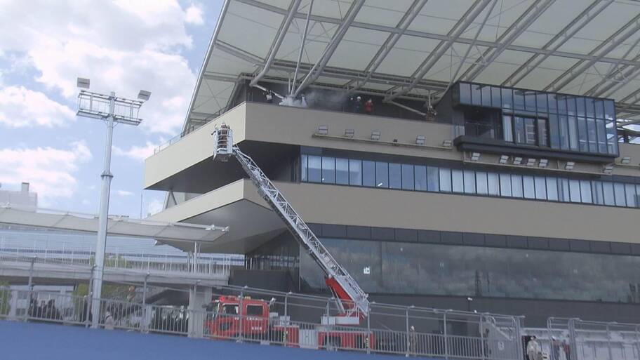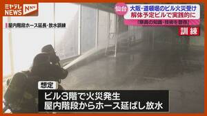 営業中に1階の飲食店の施設から火が出て、従業員らの自衛消防隊が初期消火を試みたが、火が広がったとの想定。従業員約100人のほか、市消防本部や消防署、消防団、分団の計約140人が参加、はしご車やアーム型屈折はしご車など11台の車両が投入された。