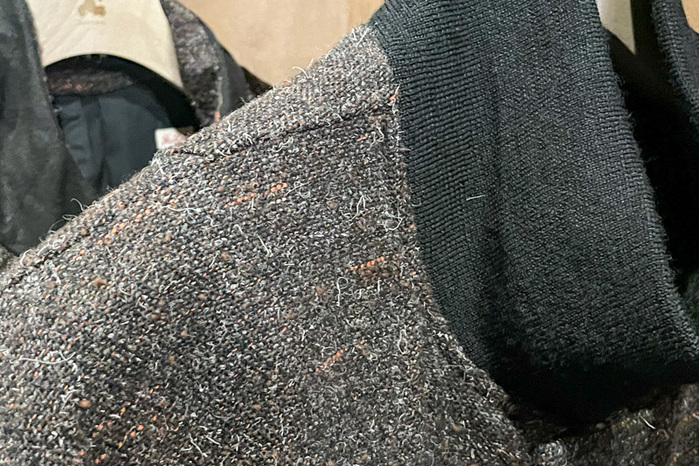 ビンテージの生地を再現し、糸の持つ表情を活かしたジャケット。