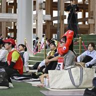 ステージにミャクミャクが登場し、King Gnuの新曲「SO BAD」に合わせたゾンビ・デ・ダンスの振り付けをレクチャー。