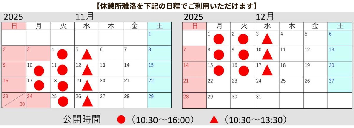 紅葉シーズンの平日限定!無料休憩所の開放日時一覧