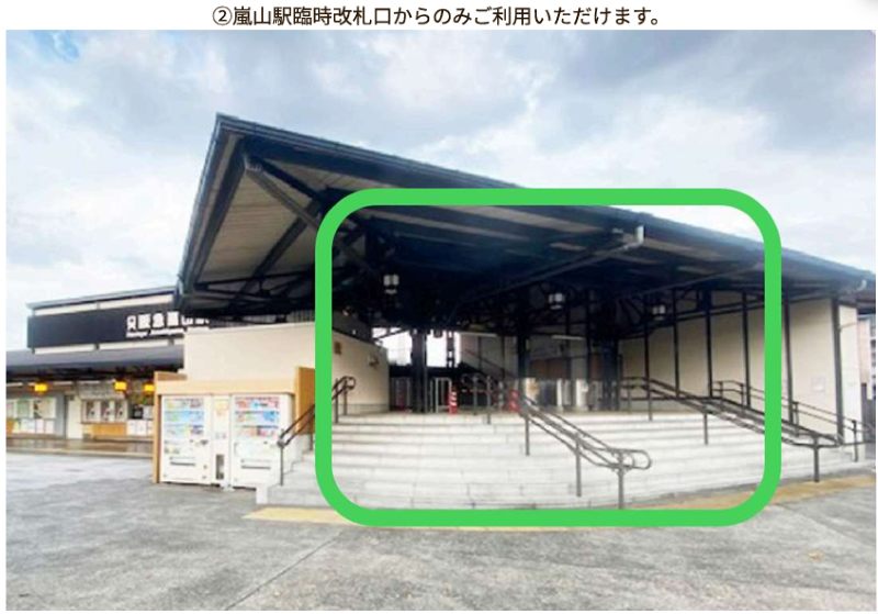 阪急嵐山駅構内の臨時改札口からアクセス可能。