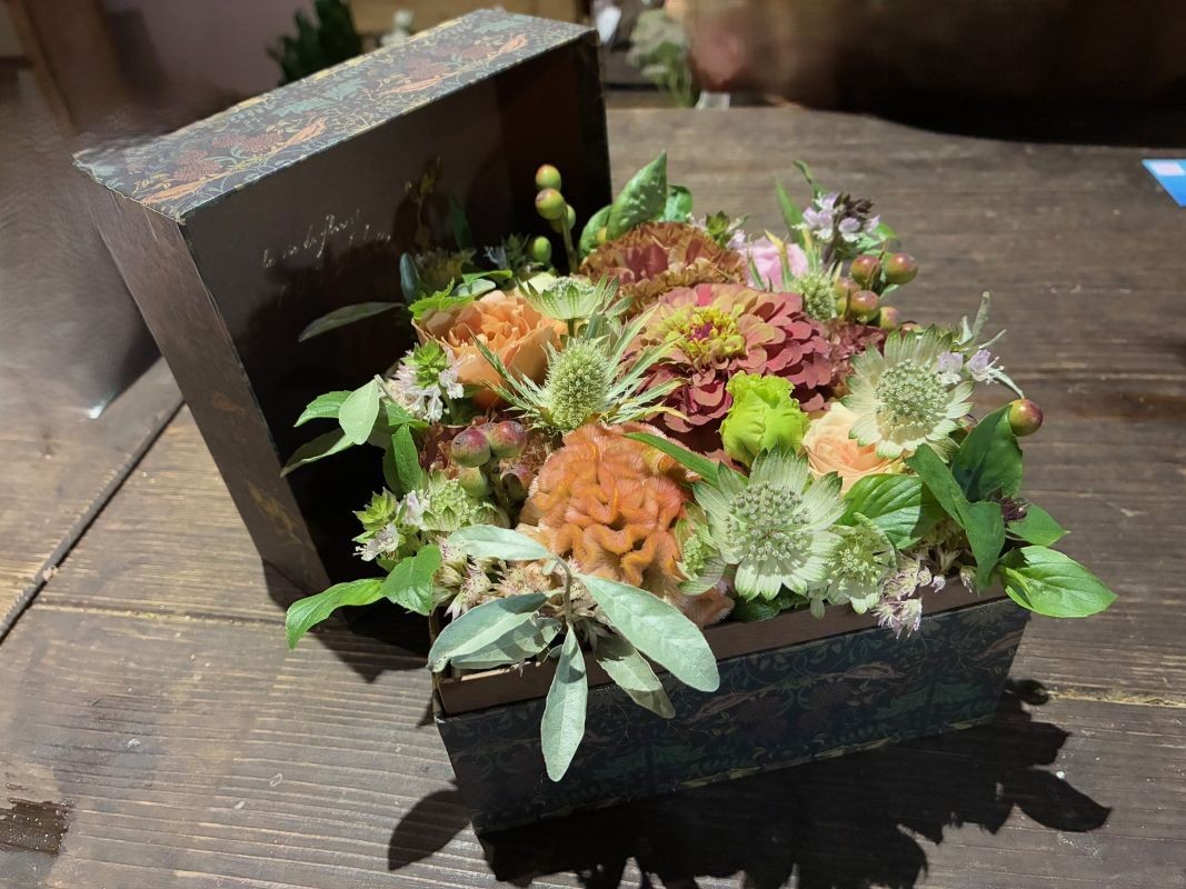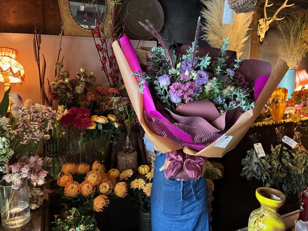 それは、これまでに見たことのないアンティークな花々が織りなす、上品で温かみのあるアレンジメントとラッピングの一束。