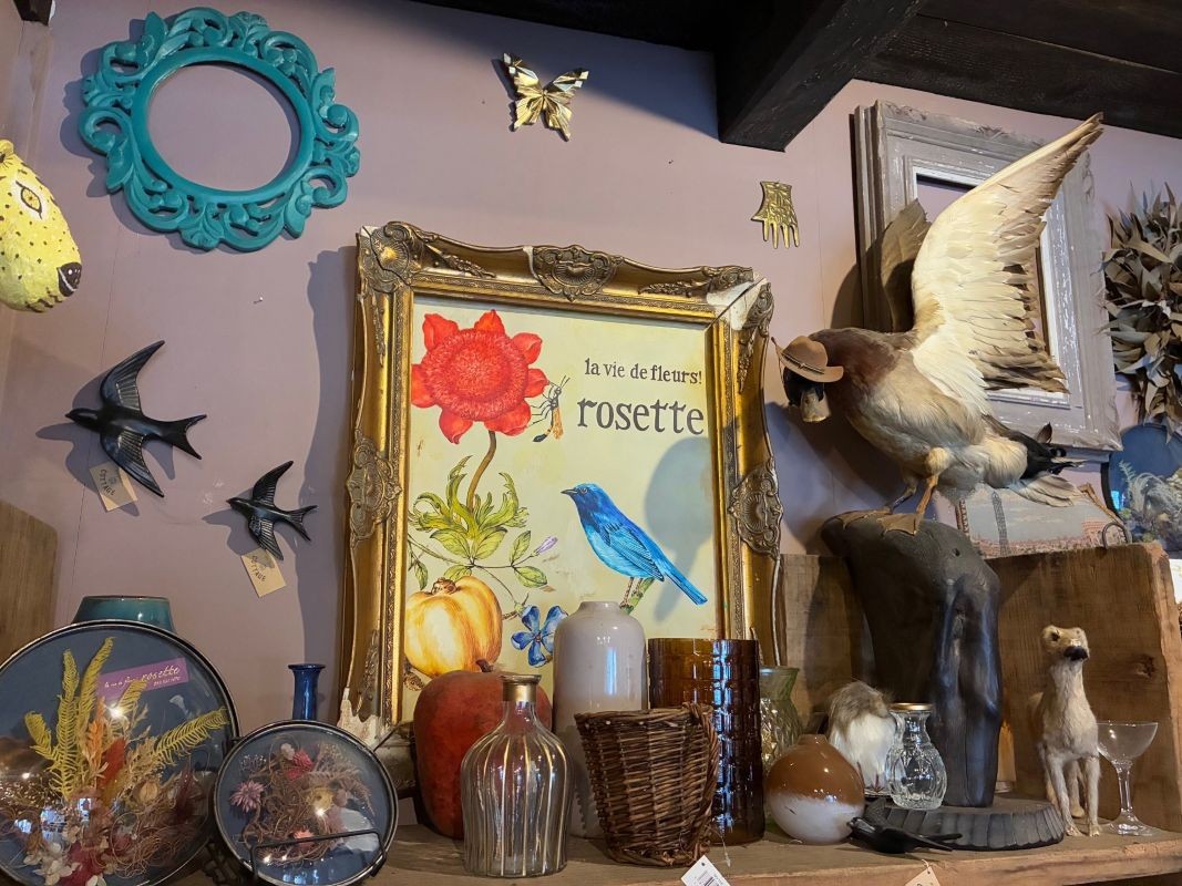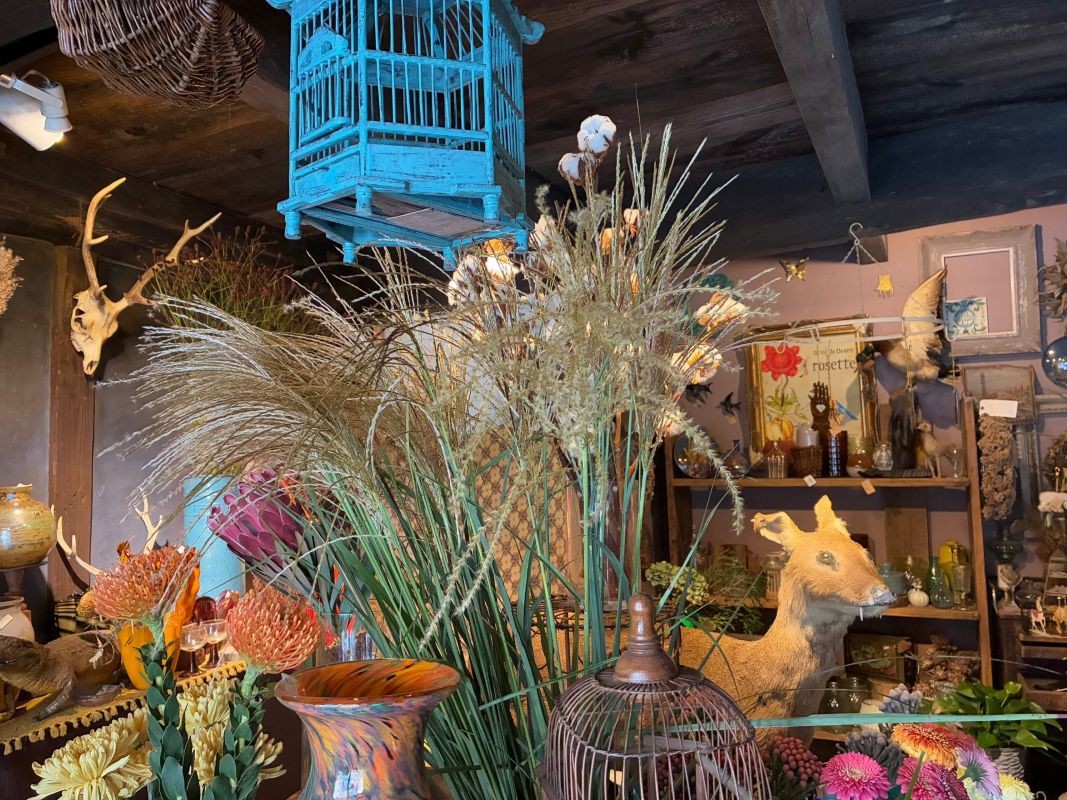 花とアンティークが調和する空間