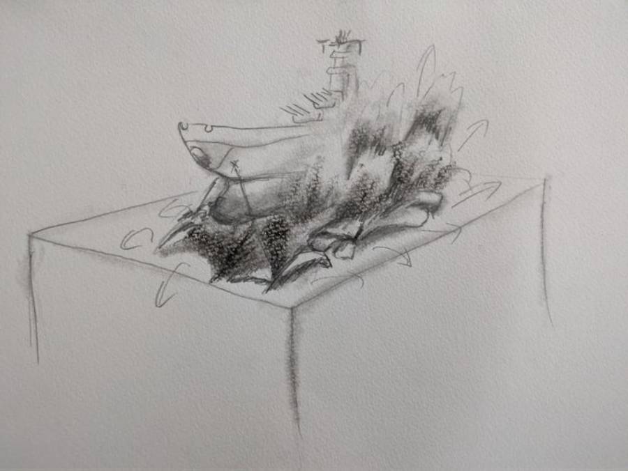 轟音とともに立ち上る煙、そして突き破られる格納庫。その先に現れるのは巨大な艦影。プラモデルの箱を舞台に繰り広げられた、壮大な“発進シーン”は、思わず息を飲む出来栄えです。
