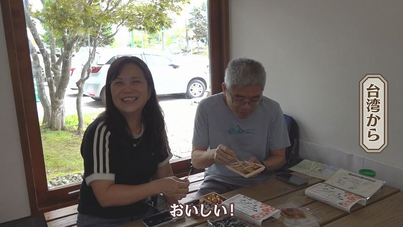 客:「欲張って2個取りしちゃお。甘いとしょっぱいがどっちも食べられるからおいしい。食いしん坊にはちょうどいい」