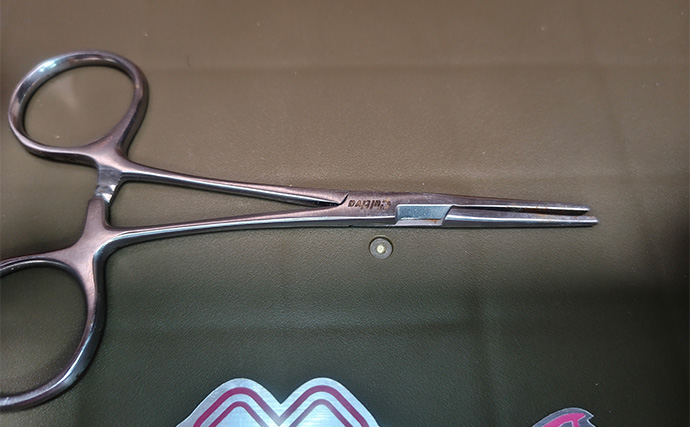 ただ、アジングのような細軸フックだと、フォーセップの奥側で潰すのがおすすめです。その方が力も入りやすく、道具への負担も少なく済みます。