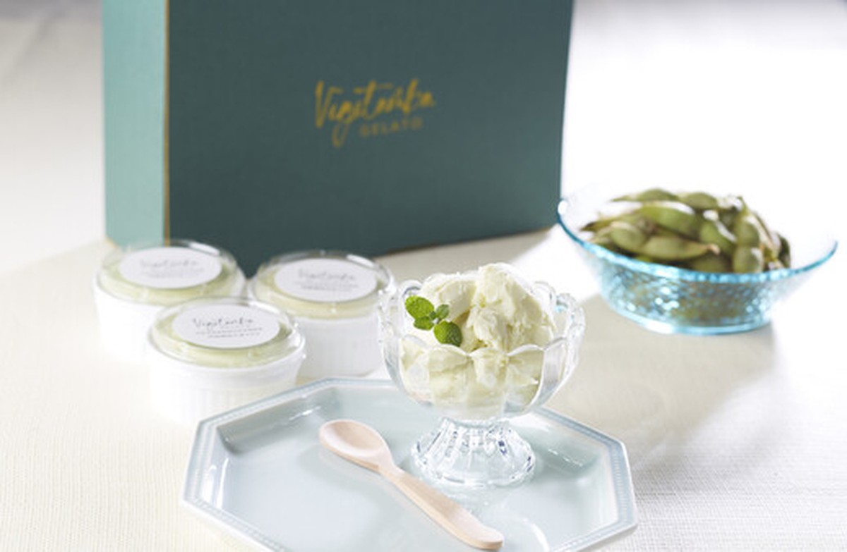 丹波の食材を贅沢に使った「ベジタンバ」のジェラートセット。丹波栗や黒枝豆をはじめ、野菜や果物の自然な甘みをいかし、無添加にこだわって仕立てられています。