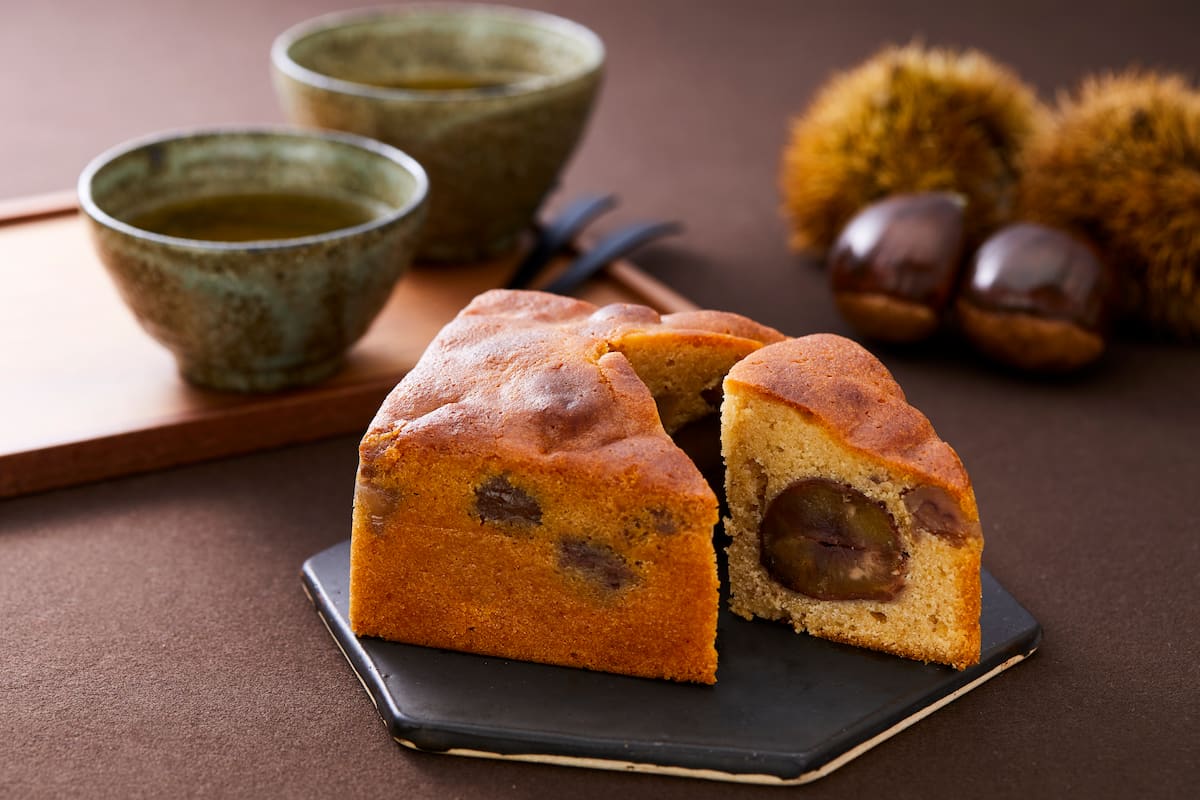 渋皮煮の丹波栗に加え、ヨーロッパ栗のシロップ煮もプラス。ほっくりとした食感と上品な甘さの丹波栗と、甘みが濃く歯ごたえのあるヨーロッパ栗が生地の中で絶妙に調和し、奥深い味わいを生み出しています。