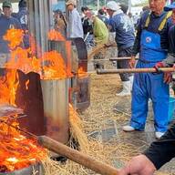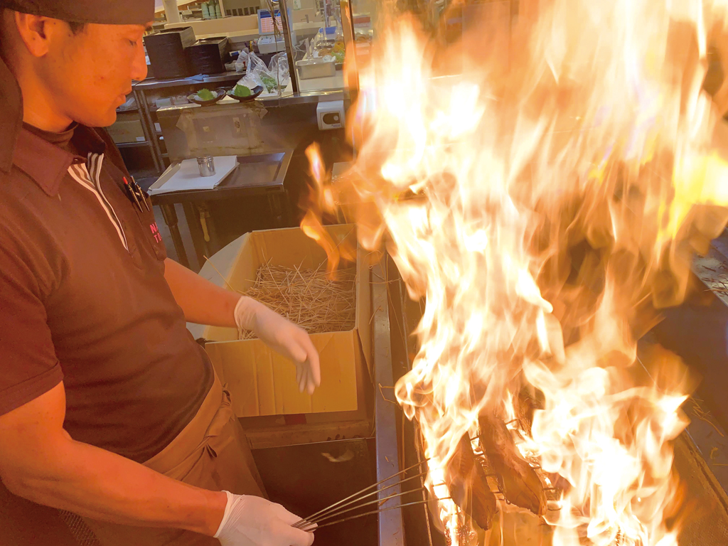 道の駅の入口を入るとすぐに、ガラス越しに藁焼きの実演を見ることができる。写真を撮りたい映えフォトスポット!
