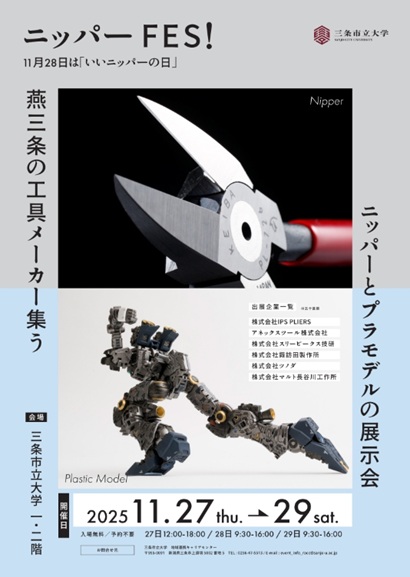 三条市立大学(新潟県三条市)で11月27日から29日までの3日間、展示会イベント「ニッパーFES!」が開催される。地域企業の技術力や燕三条のものづくりを広く知ってもらうことを目的に、「いいニッパーの日」(11月28日)に合わせて開かれる。