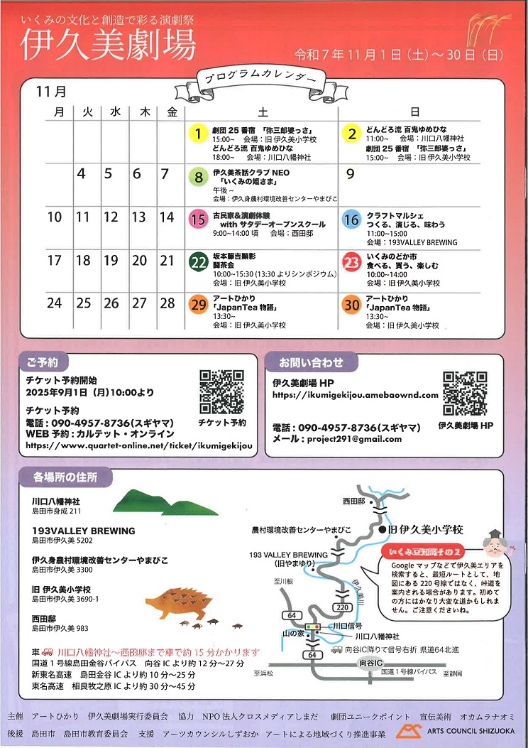 静岡新聞論説委員による「しずおか文化談話室」。今回は11月1日開幕の、島田市伊久身エリアの各所を会場とした演劇祭「伊久美劇場」がテーマ。主催団体「アートひかり」の代表で演出家の仲田恭子さんの声をお届けする。
