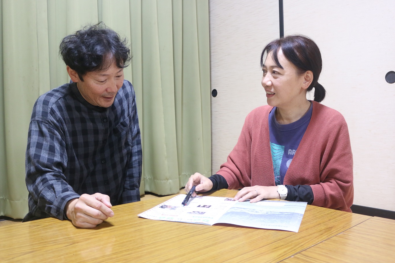 -「アートひかり」の仲田さん、俳優の杉山雅紀さんが伊久美に移住して2 年。たったそれだけの期間で地域の人たちと演劇祭を開くにまで至ったことに驚きます。