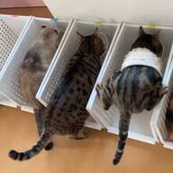 また、動画終盤には、ひとり収納ボックスの中でプライベートな時間を楽しむひのきちゃんと、そんな彼女の様子を確認するかのようにしてボックスに歩み寄る秀吉くんの姿も。もしかしたら、秀吉くんはひのきちゃんを“猫団子”に誘おうとしたのかもしれません。