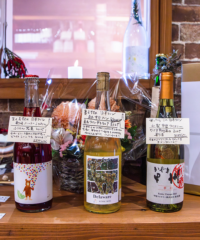 澤田さん:だいたい80種類ほどのワインを置いています。もちろん、置いてあるのは日本ワインだけです。県内外のワイナリーさんのワインを取り扱っていますよ。