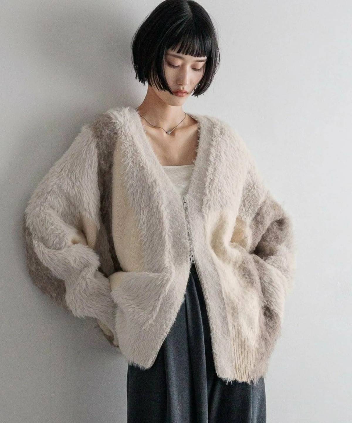 ふんわり感が特徴のシャギーカーディガンは、あたたかみがあり、2025年初冬に着るのにぴったり♪