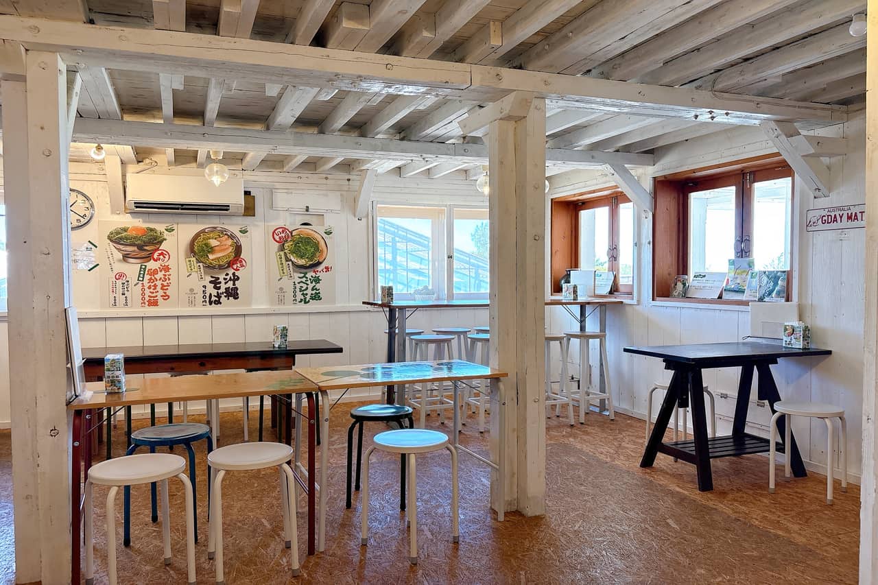 恩納村にある「崎濱製麺」は、自家製麺の硬さを「クファ」「普通」「やふぁ」から選べる仕様が特徴。 特に「クファ麺」は茹で時間わずか1分半で、歯応えが際立つ張りある食感を楽しめます。さらに、店主の三線奏者としての想いから、席には三線が置かれ、注文時にはこれを鳴らしてスタッフを呼ぶ仕組みも。 そばのだしは豚骨を使わず、豚肉・鰹・昆布などをじっくり煮出したあっさり系。セットには「崎濱すば」「骨なしてびちすば」などがあり、麩じゅーしーとの組み合わせでゆったり楽しめます。 店内は座敷・座卓席を備え、家族連れにも心地よい雰囲気。 麺の主張、店の遊び心、地元の味を同時に味わえる一軒です。 住所:〒904-0416 沖縄県国頭郡恩納村山田847