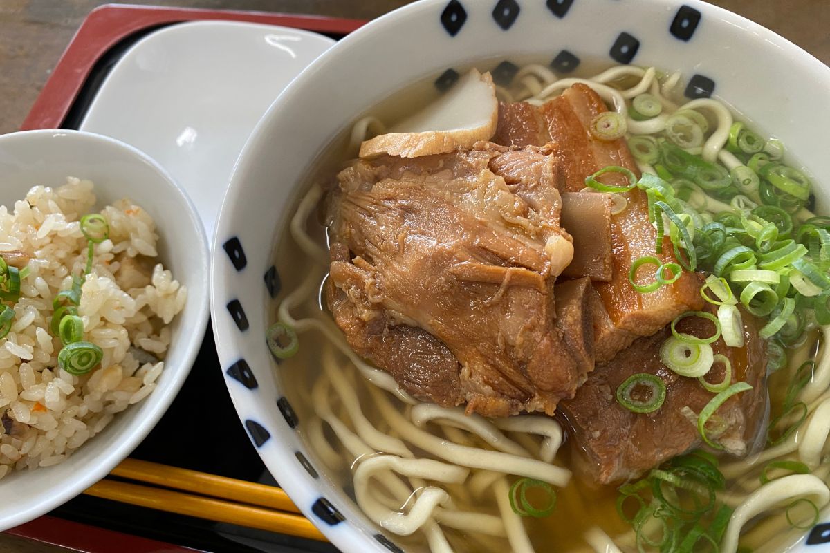 名護市中山の緑豊かな山あいに佇む「百年古家 大家(うふやー)」は、築百年以上の琉球古民家を活用した人気の食事処。赤瓦屋根と石垣に囲まれた趣ある空間でいただく沖縄そばは、透明感のあるだしとしっかりとしたコシのある麺が特徴です。 豚骨と鰹を合わせたスープは香り高く、三枚肉やソーキの旨みが一体となったやさしい味わい。庭の草木のせせらぎを聞きながら、昔ながらの沖縄時間を感じられる一軒です。 観光客にも地元客にも長く愛される、名護を代表する老舗そば処です。 住所:〒905-0004 沖縄県名護市中山90
