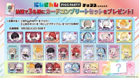 にじさんじチップス、コンプリートセットが当たる!PIGG PARTYアプリ連動キャンペーンも