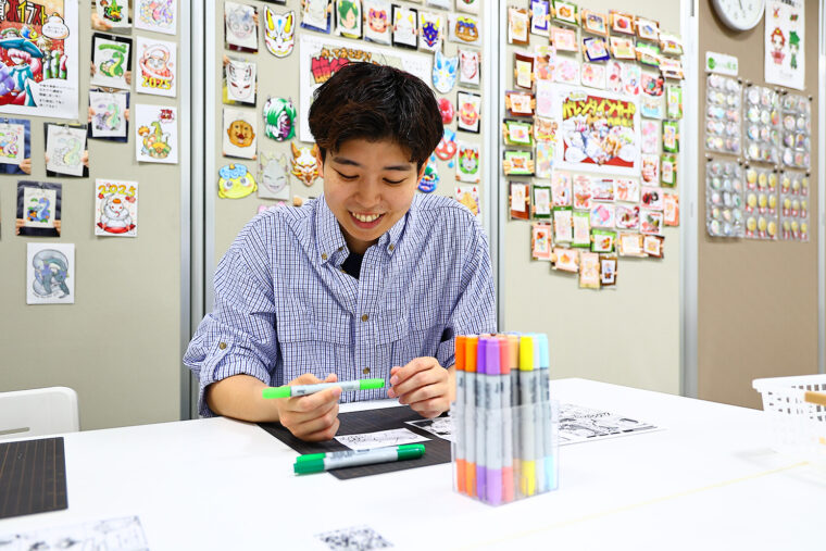 プロの漫画家も愛用するコピックマーカーでの塗り絵でセンスを見せつけ、初めてのつけペンもあっという間に習得。