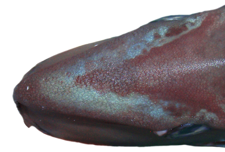 また、写真の上下唇が白っぽくなっていますが、これは傷がついて白っぽくなったというものではなく、マサカリテングハギの特徴です。吻部以外の外見については、マサカリテングハギはとくに体側の背部が突き出すということはないのですが、トサカハギは体側背部に目立つ隆起があることで見分けることができます。